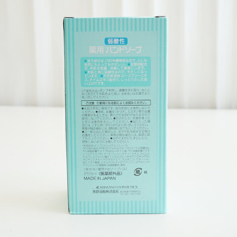 ▼商品名弱酸性 薬用ハンドソープ250ml▼セット内容250ml薬用ハンドソープ×6本▼有効成分イソプロピルメチルフェノール▼その他の成分POE(3)アルキル(12〜15)エーテル硫酸Na、ヤシ油脂肪酸アミドプロピルべタイン液、ヤシ油脂肪酸ジエタノールアミド、PG、グリセリン、ローズマリーエキス、タイムエキス(1)、ヒアルロン酸ナトリウム(2)、ヘキサデシロキシPGヒドロキシエチルヘキサデカナミド、アルギニン、エタノール、BG、エデト酸塩、メチルクロロイソチアゾリノン、メチルイソチアゾリノン、pH調整剤、粘度調整剤、香料▼箱サイズ(1個)7.5×5.5×14.5cm・320g▼製造熊野油脂株式会社/日本製※ハトムギ化粧水などで有名な1952年創業 老舗化粧品メーカー※内容・デザインなど変更になる場合があります。
